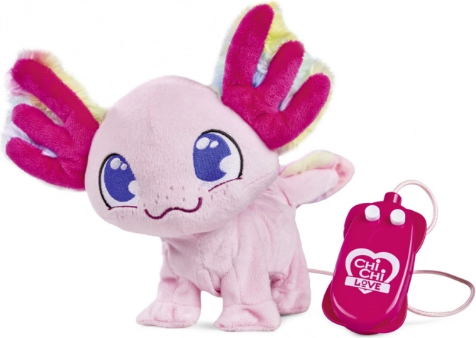 Découvrez un monde magique avec l’axolotl interactif CHI CHI LOVE. Ce compagnon en peluche de 20 cm, d’un rose doux avec des branchies irisées et de grands yeux brodés, séduit au premier regard. La commande via la télécommande filaire fait aussi office de laisse, ce qui permet de guider facilement l’axolotl, qui réagit par des mouvements et des sons.