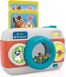 Ce modèle parlant de la marque CLEMENTONI est conçu pour que les petites mains puissent manipuler facilement tous les boutons. Les boutons colorés déclenchent différents sons et mélodies, le flash clignotant attire l’attention, et le petit miroir avec des billes dans l’objectif encourage les enfants à explorer la perspective et la profondeur.