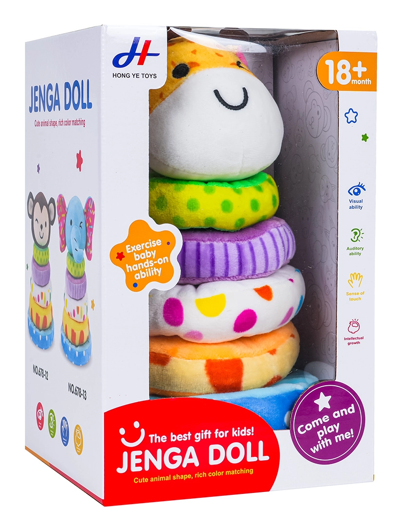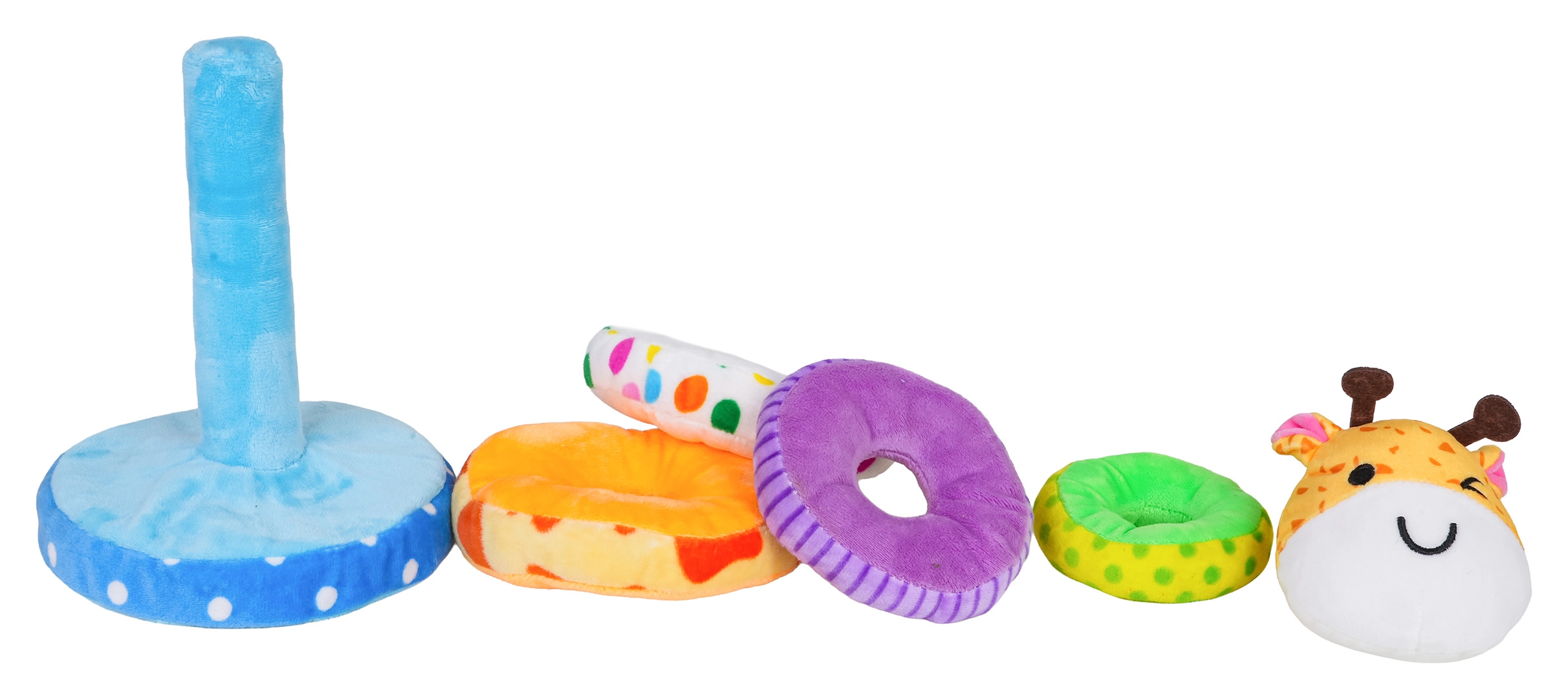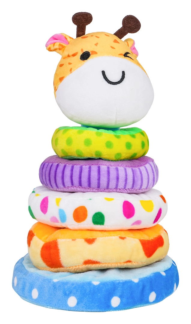Adorable pyramide souple en forme de girafe qui développe la motricité fine, la coordination œil–main et l’apprentissage du tri par taille. Les anneaux colorés et moelleux en peluche invitent au toucher et au jeu en toute sécurité. La tête de la girafe cache un sifflet qui émet un son lorsqu’on appuie, stimulant ainsi la perception sensorielle. Jouet idéal pour les enfants à partir de 18 mois.