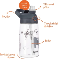 Pratique gourde pour enfants en tritan de 480 ml, idéale pour l’école, le terrain de jeu et les sorties. Elle est légère, résistante et fabriquée à partir de matériaux sans substances nocives. Grâce au système ONE-HAND OPEN, les enfants l’ouvrent d’une seule main. Elle dispose d’un couvercle étanche avec verrou anti-ouverture involontaire et d’une large poignée pour un transport facile.