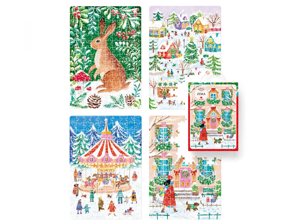 Profitez de l’atmosphère hivernale avec l’élégant ensemble de puzzles CzuCzu Puzzlove Hiver. L’emballage contient 4 images de 150 pièces, idéal pour des moments en famille comme pour la détente des adultes. Les puzzles favorisent la concentration, développent l’observation et l’imagination et apportent calme et joie du temps partagé.