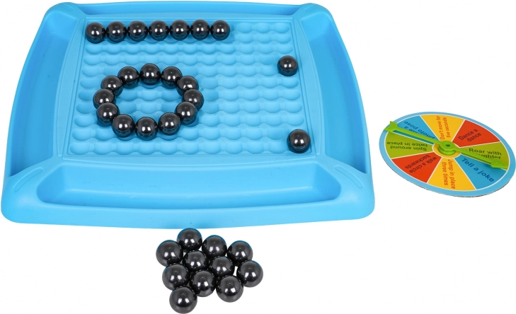 Jeu de société magnétique pour enfants dès 8 ans. 32 billes, roue de défis et 3 variantes de jeu pour développer la dextérité, la créativité et s’amuser à deux.
