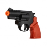 Un pistolet en plastique avec embout orange, idéal pour les petites mains – facile à tenir, à manipuler et à glisser dans un sac à dos.
