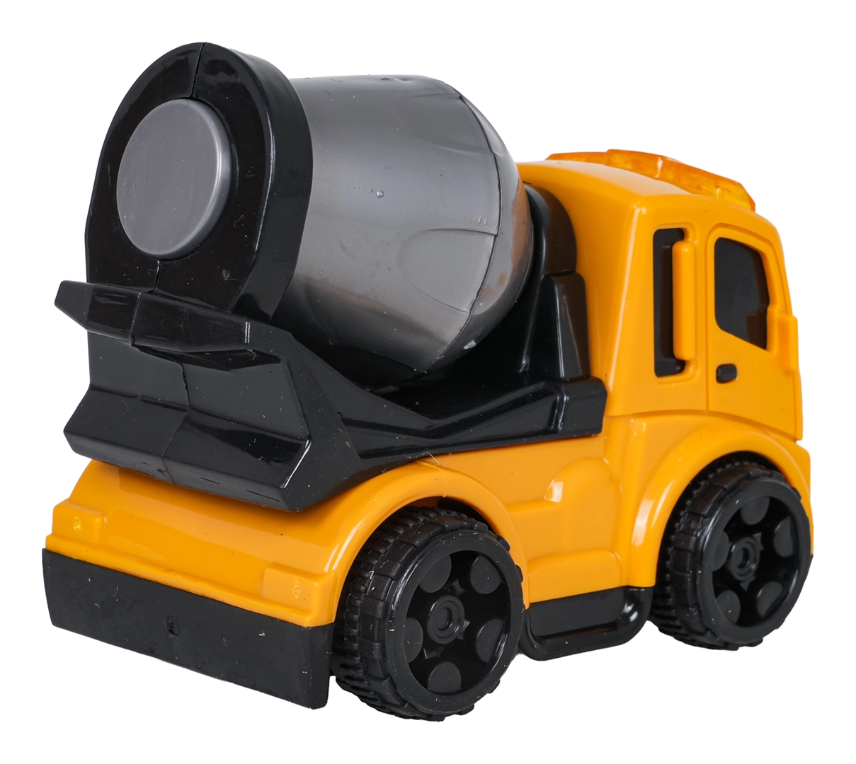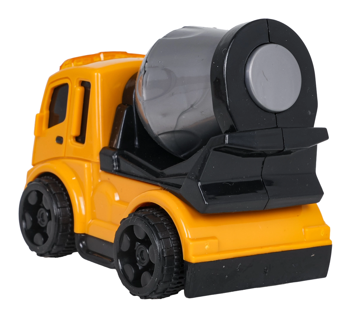Godets fonctionnels, bras articulés et tambour rotatif stimulent l’imagination et l’imitation de véritables travaux de construction.