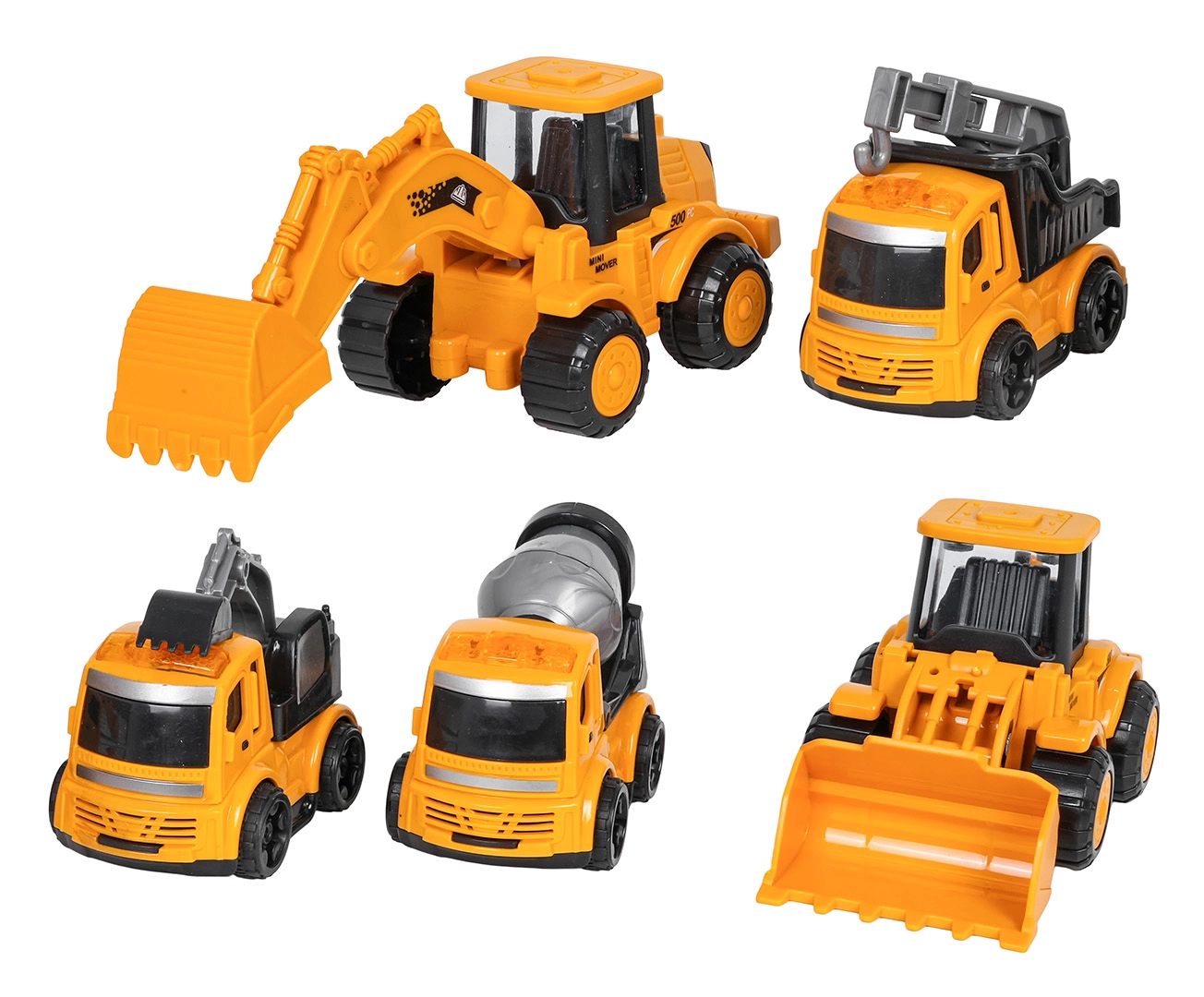 Ce coffret complet 5 en 1 apporte un chantier réaliste dans la chambre des enfants comme sur le terrain de jeu. Les véhicules disposent d’une flèche mobile, de godets et d’un tambour de bétonnière rotatif, pour des heures de jeu créatif. Le plastique de qualité et les roues robustes garantissent une longue durée de vie et une utilisation sûre.