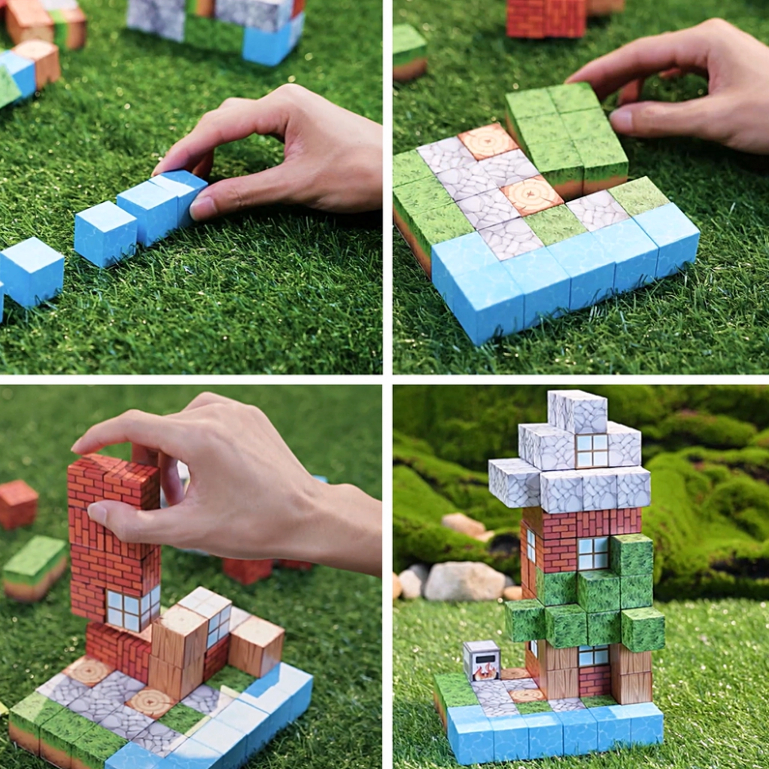 Les blocs magnétiques WOOPIE au look pierre, bois, brique, herbe et eau offrent des possibilités de construction illimitées. Grâce aux aimants puissants, les pièces se relient rapidement et solidement, créant des constructions stables sans colle. Parfait pour jouer à la maison ou pour s’amuser en groupe.