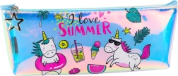 Vous cherchez une trousse qui allie design mignon et fonctionnalité? Cette trousse holographique avec l’inscription « I love SUMMER », une licorne et des icônes estivales séduit par son effet iridescent brillant et ses dimensions compactes qui économisent de la place dans le cartable. Sa structure transparente permet de retrouver rapidement tout ce dont vous avez besoin.