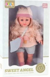 Poupée Sweet Angel en petit pull tricoté avec sac à main et bonnet 36 cm