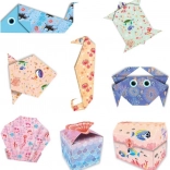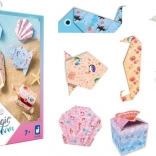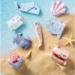 À partir des papiers préimprimés, pliez facilement des poissons, une tortue, un crabe, un hippocampe ainsi que de petites boîtes et coffrets à trésors.