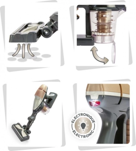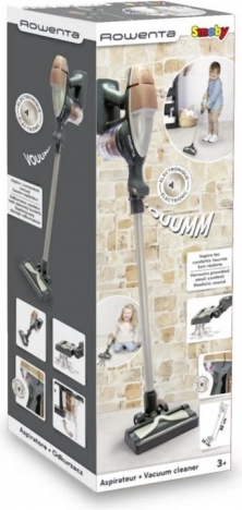 Stylish aspirateur balai pour enfants inspiré du modèle ROWENTA Air Force 360 offre aux enfants une expérience de ménage réaliste. En appuyant sur le bouton, le voyant LED s’allume, un véritable son d’aspiration retentit et un léger effet d’aspiration s’active. Le réservoir transparent avec des billes tourbillonnantes peut être ouvert et vidé comme sur un véritable appareil. La possibilité d’utilisation en aspirateur à main favorise le jeu créatif.