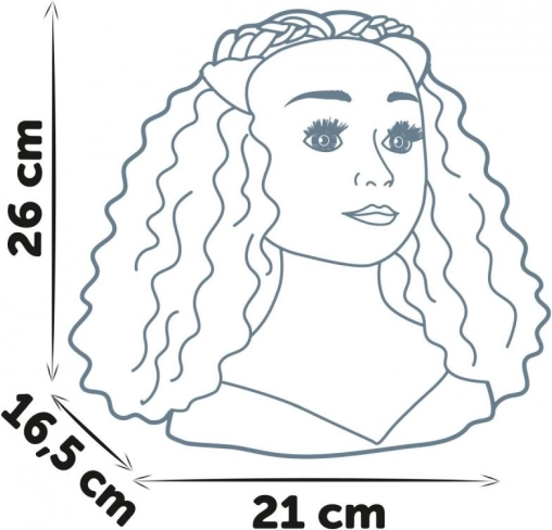 Le socle stable avec ventouses maintient la tête solidement sur la table, facilitant ainsi le coiffage. Les 23 pièces d’accessoires se rangent facilement dans la cachette secrète du socle, pour tout avoir à portée de main sans désordre. La hauteur de 26 cm est idéale pour les petites mains et les premiers essais de coiffure.