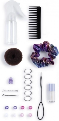 - 23 accessoires incluant peignes, élastiques, pinces, perles et outils