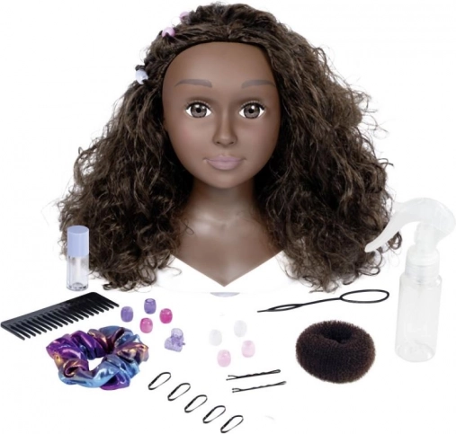 Cette tête à coiffer Afro est une partenaire idéale pour s’entraîner aux tresses, chignons et coiffures modernes. Les boucles réalistes et volumineuses permettent de coiffer, tresser et décorer, et grâce aux accessoires fournis tu réussiras des coiffures pour chaque occasion. Elle offre en plus une fonction magique des lèvres – trempe le pinceau inclus dans l’eau froide et observe la belle coloration des lèvres.