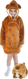 Cette couverture sweat à capuche pour enfants au design capybara est comme un câlin qui réchauffe de la tête aux pieds. La couche intérieure en polaire sherpa est moelleuse et chaude, tandis que l’extérieur en flanelle douce est soyeux au toucher. Grâce à sa coupe oversize, les enfants se sentent à l’aise devant la télé, en jouant ou en se reposant.