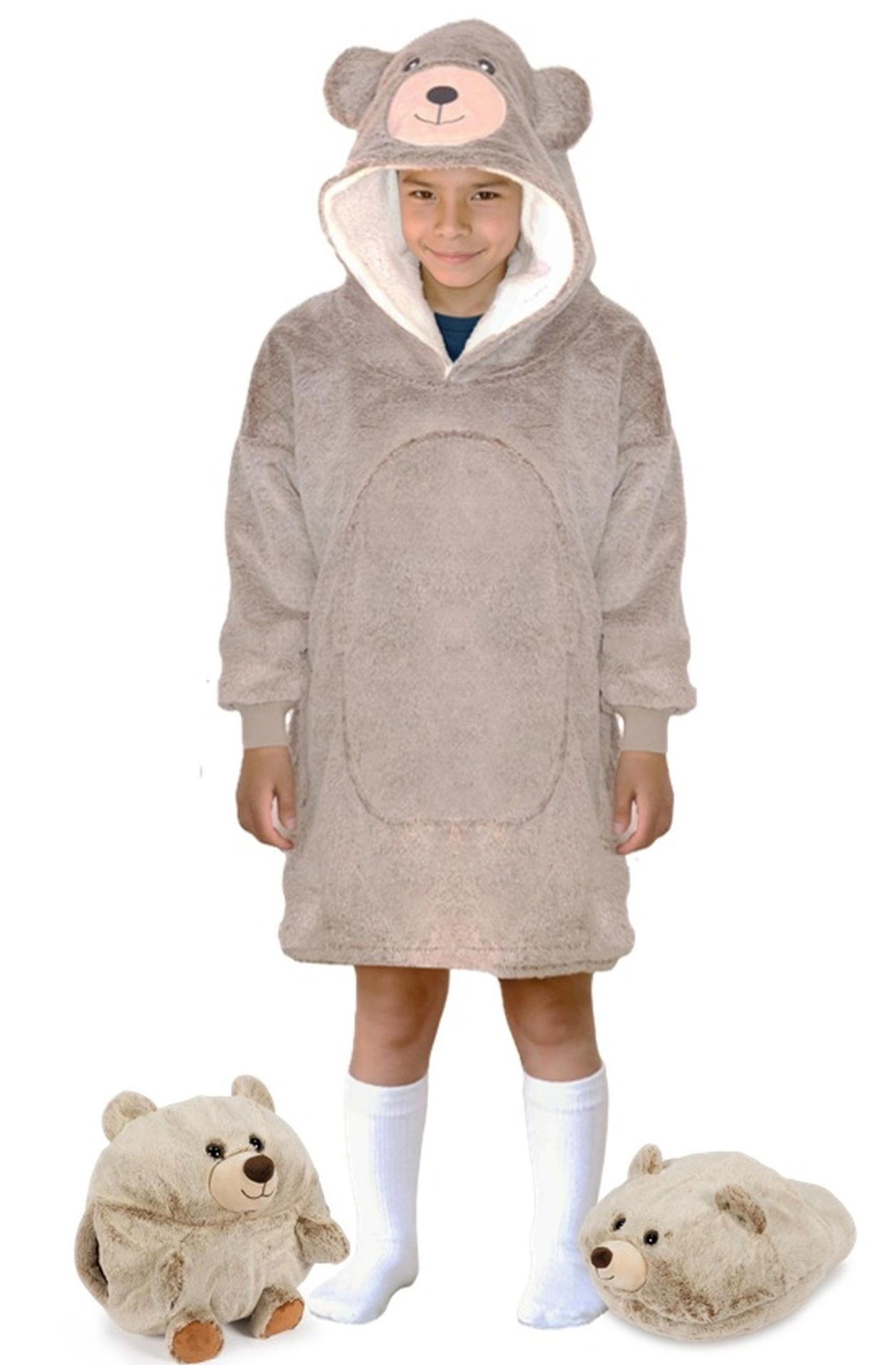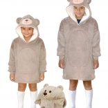Cette couverture-sweat chaude OURS de Cozy Noxxiez est un compagnon indispensable pour tous les petits amateurs de confort. Confectionnée en flanelle ultra douce et doublée à l’intérieur d’un polaire sherpa duveteux, elle procure une chaleur agréable de la tête jusqu’aux genoux. Grâce à sa coupe ample, elle n’entrave pas les mouvements, et les enfants l’adorent pour regarder des dessins animés, lire ou jouer.