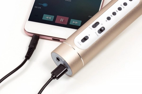 - Contrôle simple : boutons pour l’alimentation, la musique, le volume et l’écho