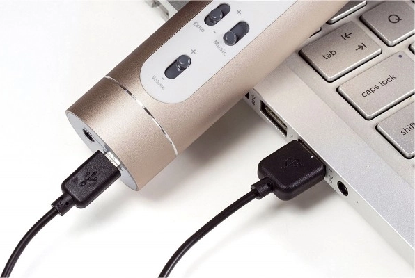- microphone karaoké, câble de charge USB–Micro USB, câble audio, manuel