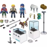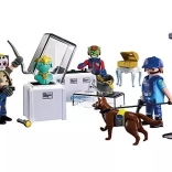 Alarme au musée – des voleurs essaient de forcer les vitrines et de s’enfuir avec le butin ! Le policier se faufile discrètement dans la salle d’exposition et, avec le chien de service, lance la poursuite. Le set PLAYMOBIL Action Heroes propose une histoire dynamique avec de nombreux accessoires et fonctions réalistes qui plongent les enfants dans l’univers des grands braquages.
