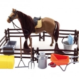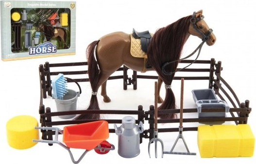 Ce merveilleux ensemble de soins pour chevaux offre tout ce qu'il faut pour les petits fermiers et passionnés de chevaux. Cheval avec selle et rênes a une belle crinière longue et une queue qui peuvent être brossées.