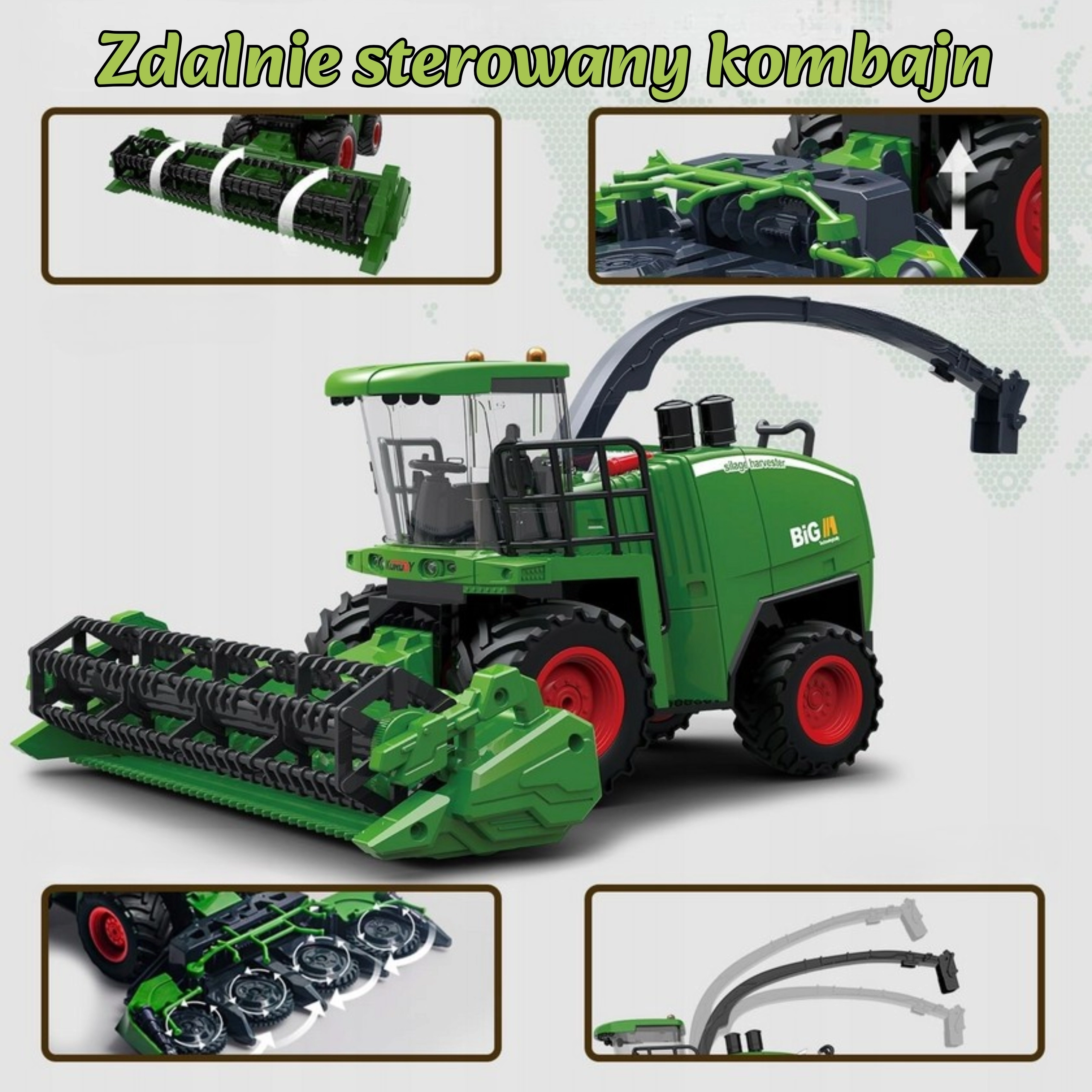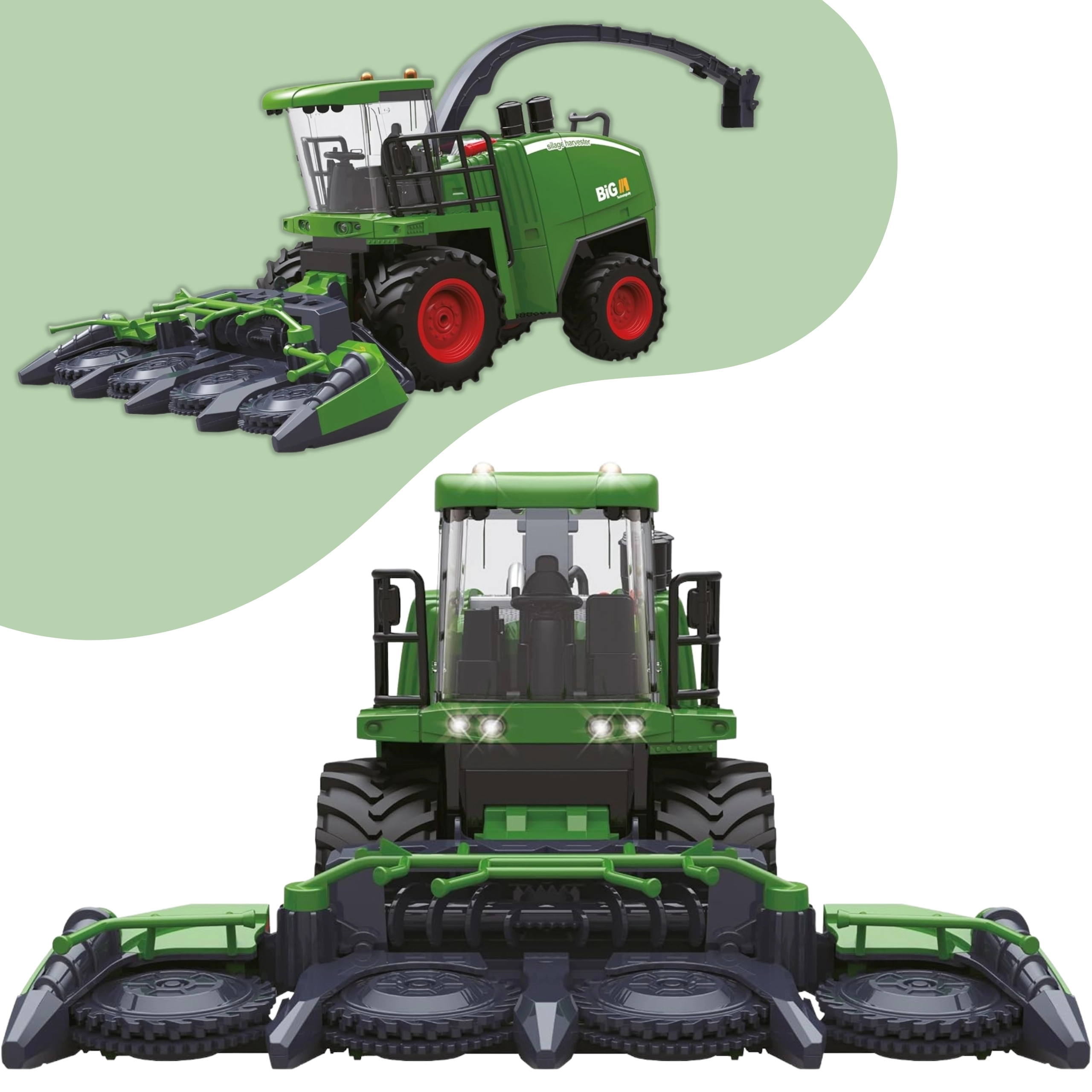 Moissonneuse-batteuse WOOPIE télécommandée à l’échelle 1:24 offrant un jeu agricole réaliste avec effets lumineux et sonores, barre de coupe rotative et effet de fumée. Grâce au contrôle avant/arrière et latéral, à une portée jusqu’à 30 m et une autonomie de 30–40 minutes, c’est un excellent choix pour les petits fans de la ferme.