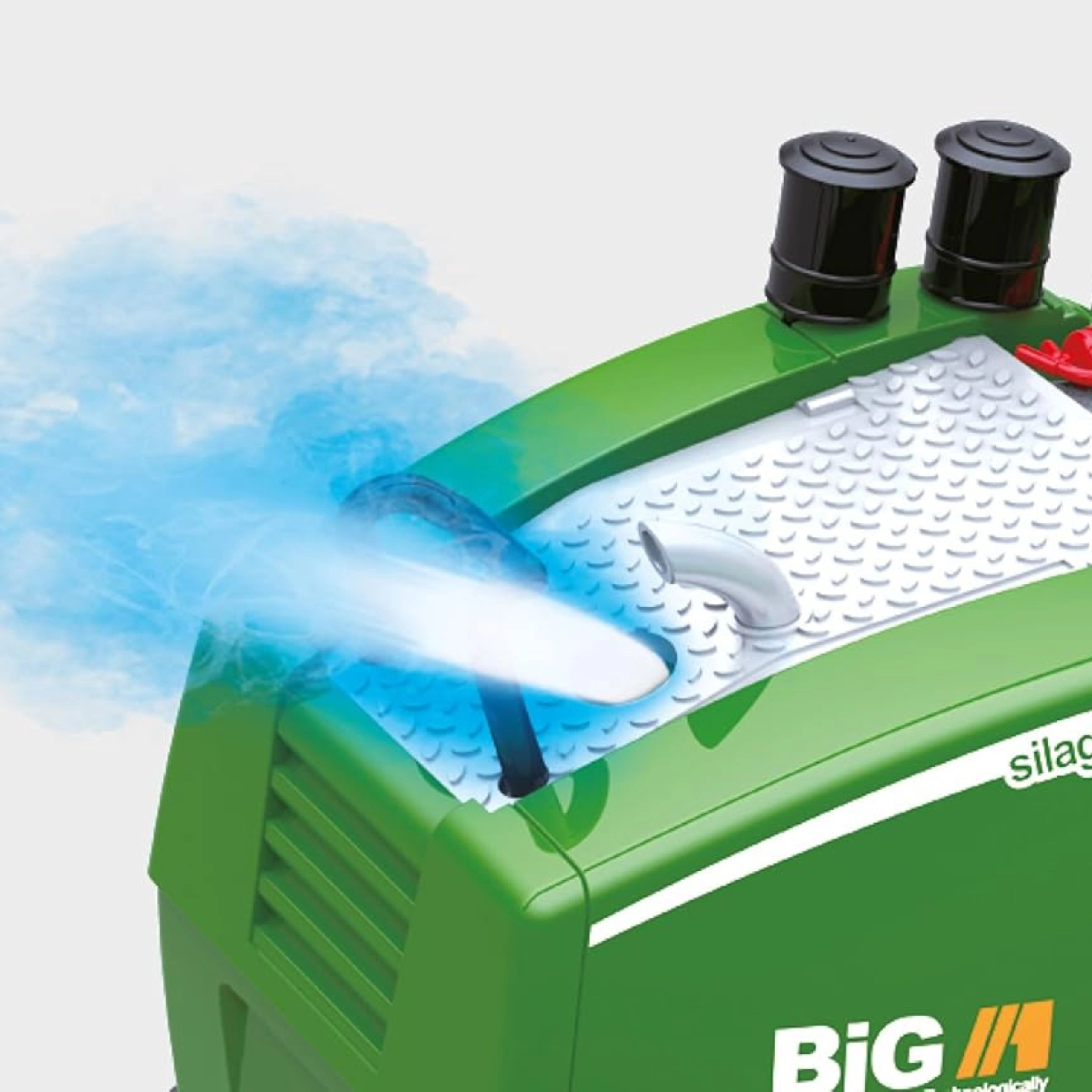 - Riche en accessoires : barre de coupe interchangeable et goulotte d’éjection, bouteille d’eau pour la fumée
