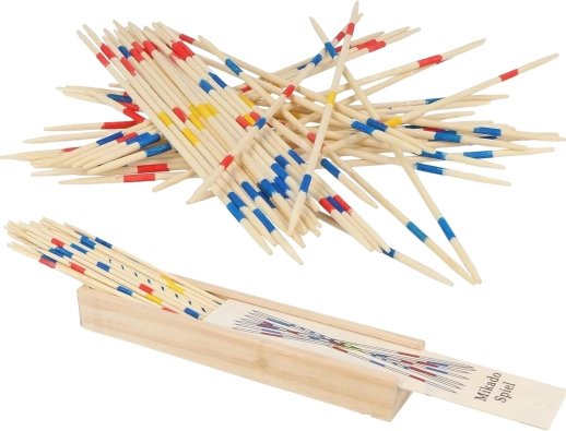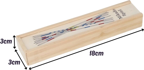 - Contenu de l’emballage : ensemble complet de bâtonnets en bois avec marquage coloré, règles du jeu avec variantes de comptage, boîte de rangement.