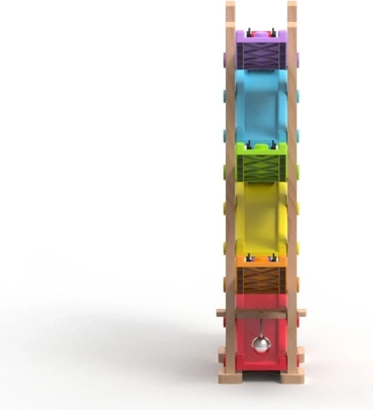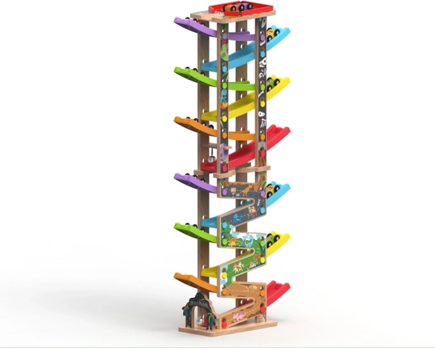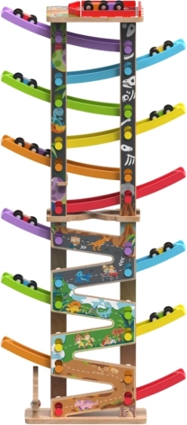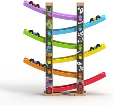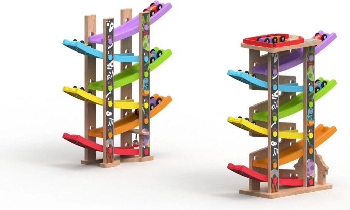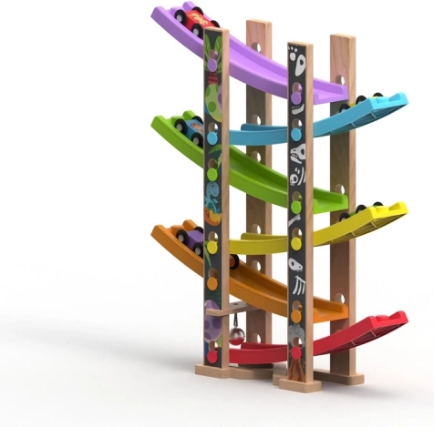Cette grande piste de course en bois apporte encore plus de vitesse et de plaisir dans la chambre des enfants. Grâce à ses six rampes colorées, les enfants suivent la descente fluide des voitures et découvrent les principes de la gravité et de la cause à effet. La piste peut être utilisée seule ou connectée comme extension à votre circuit existant pour une course encore plus longue et dynamique.