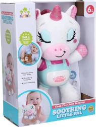 Adorable veilleuse peluche en forme de licorne qui aide les enfants à s’endormir paisiblement grâce à une combinaison de berceuses, de musiques apaisantes, de sons de ronflement et d’un doux effet lumineux. Commandes simples – il suffit d’appuyer sur le ventre pour choisir le mode. Pratique interrupteur on/off sur le côté du jouet. Taille 29 cm, alimentation par 3× piles AAA (non incluses).