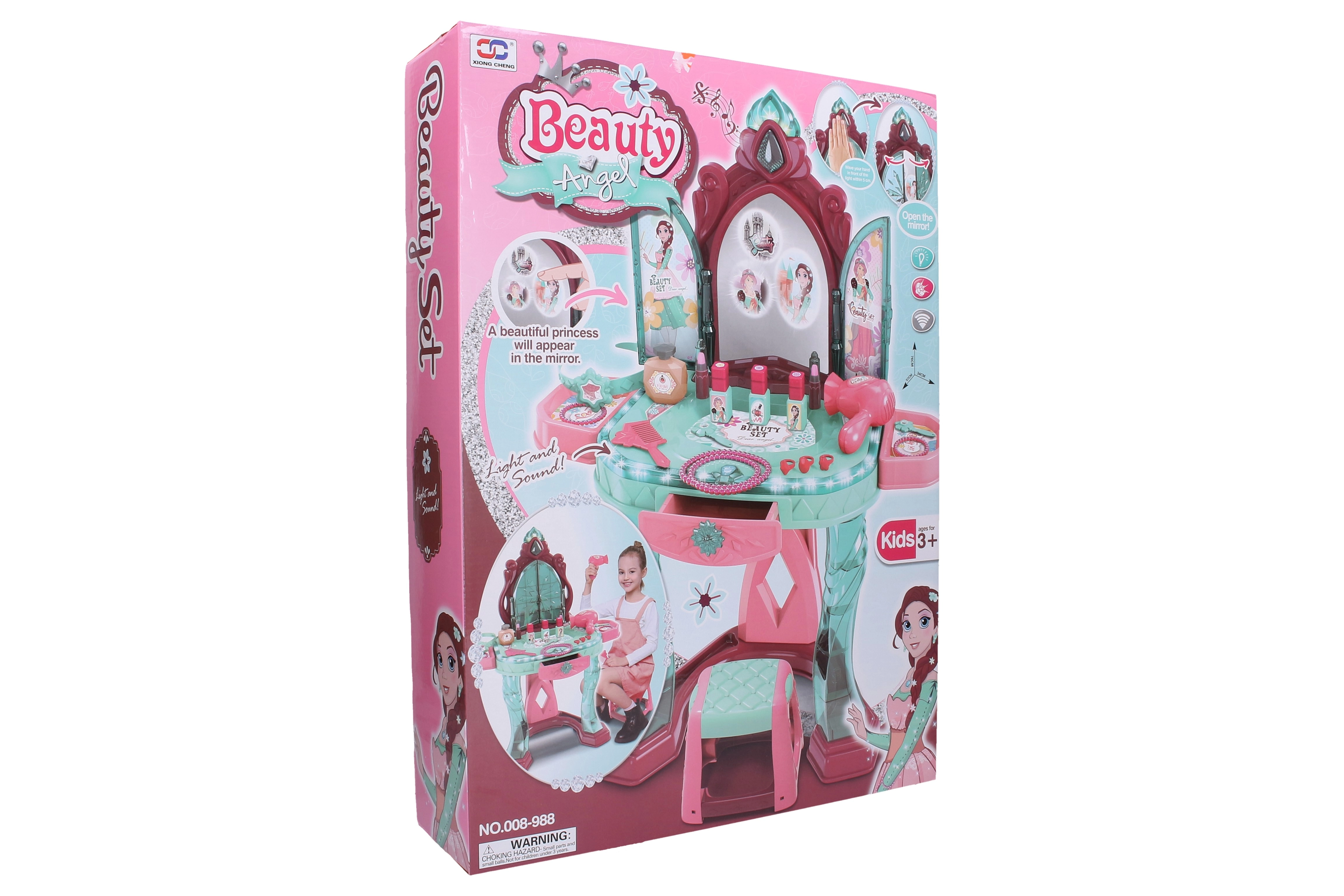 - Set complet – coiffeuse, miroir, tabouret et accessoires.