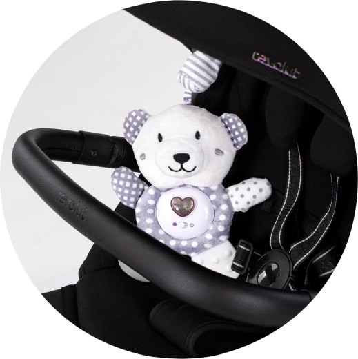 Vous cherchez un compagnon tout en douceur qui divertira et apaisera votre bébé ? L’ourson en peluche CHIPOLINO Teddy Bear associe des matériaux moelleux, des mélodies agréables et une lumière douce pour créer un environnement cosy propice au repos et au jeu. Grâce au clip pratique, vous l’accrochez aisément à la poussette, au siège auto ou au lit.