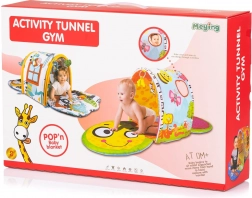 Des motifs colorés, des jouets suspendus et un tunnel sécurisé encouragent la stimulation sensorielle, la coordination œil–main et le développement de la motricité globale dès les premiers mois.