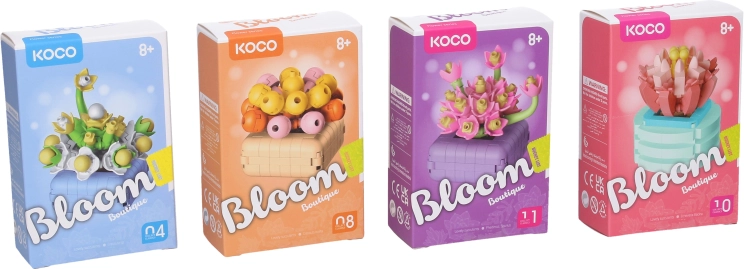 Découvrez le monde créatif des mini kits de construction KOCO plantes – des kits compacts avec 12 motifs différents de fleurs et de petites plantes dans un élégant présentoir. Chaque set contient des briques de qualité, un outil pratique pour séparer les pièces et un guide illustré détaillé pour un assemblage facile. Idéal comme décoration de table stylée, cadeau pour les enfants dès 8 ans et les adultes et pour tous ceux qui aiment la création relaxante et les designs colorés.