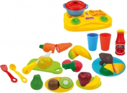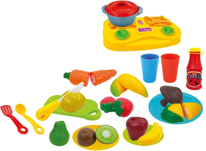 Un ensemble ludique pour petits chefs avec un panier pratique et des aliments à découper. Favorise la motricité fine, le jeu créatif et l’apprentissage des différents aliments. L’emballage contient 17 pièces pour de riches possibilités de jeu.