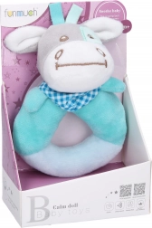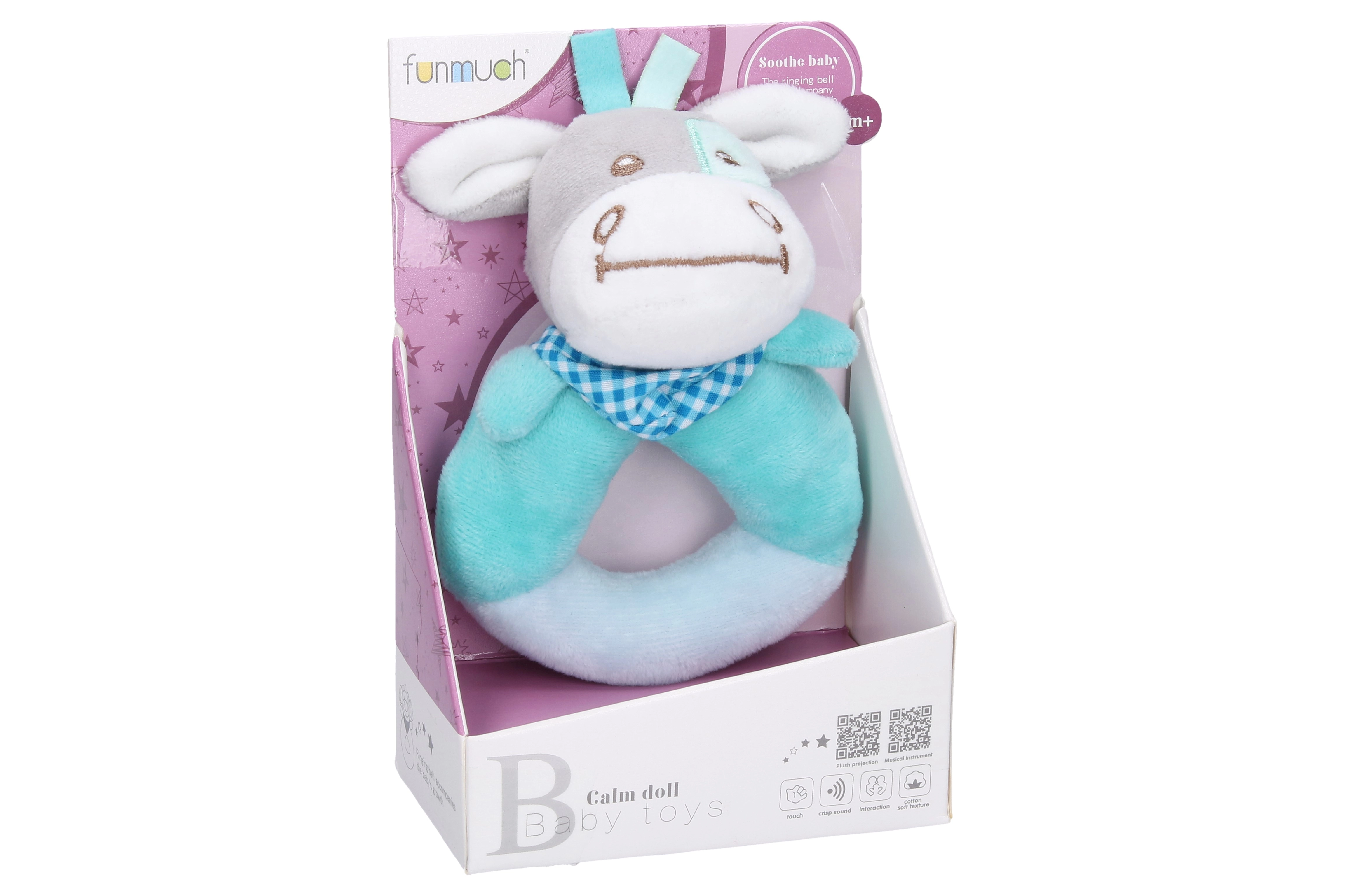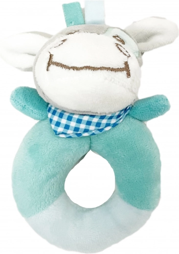 Adorable hochet en peluche en forme de petit âne avec anneau pratique, idéal pour les petites mains des enfants. Il offre un son doux, une matière agréable et un premier jeu sûr et amusant à la maison comme en déplacement. Taille 13 cm parfaite pour la prise en main et le développement des sens.
