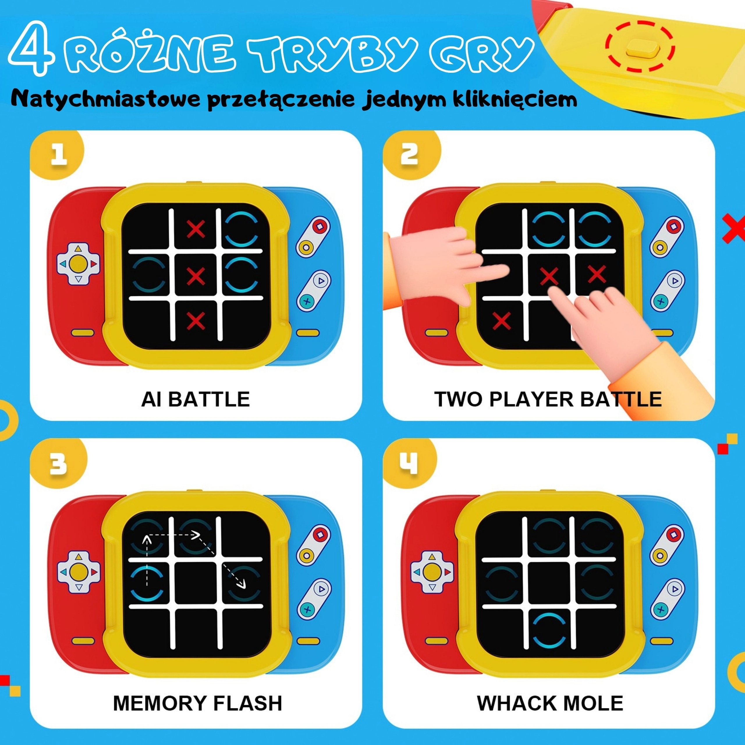 Un jeu électronique amusant pour les enfants dès 3 ans qui combine le morpion classique avec une technologie moderne. Il propose un écran LCD interactif, 4 modes de jeu (IA, 1v1, mémoire, tape-taupe), des chevilles physiques pour le jeu traditionnel et une conception compacte idéale pour les voyages. Les effets sonores et le contrôle facile en font un excellent choix pour toute la famille.