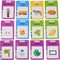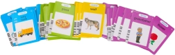 Au total 224 images sur les thèmes : animaux, véhicules, objets, repas, légumes, fruits, famille, couleurs, formes, métiers, vêtements et nature – idéal pour le vocabulaire.