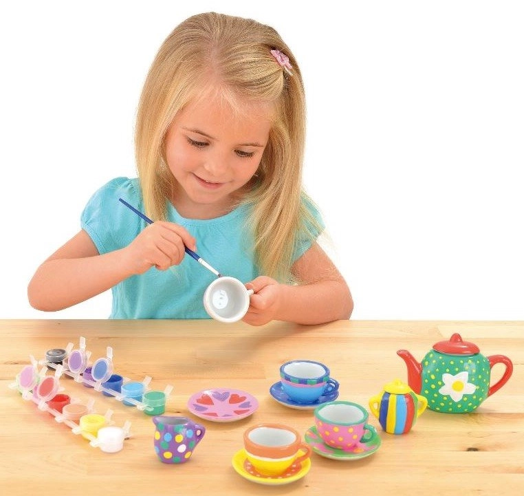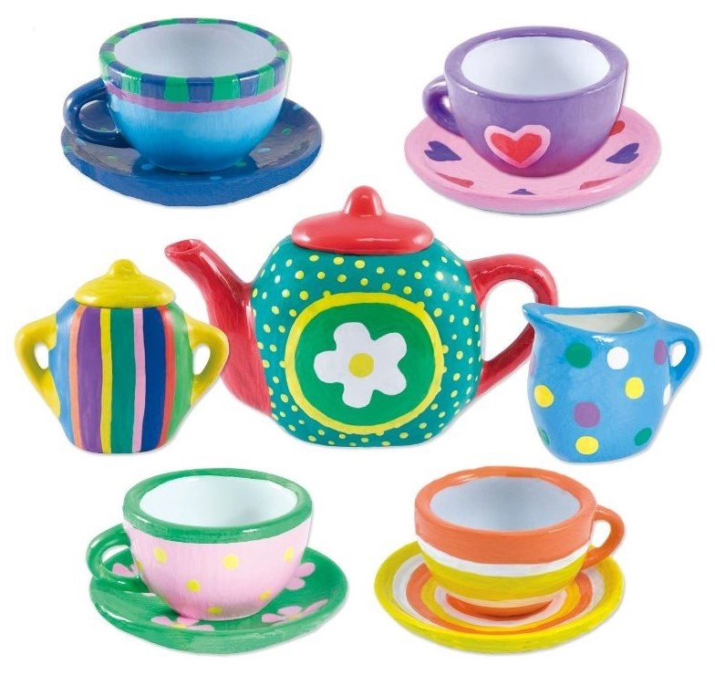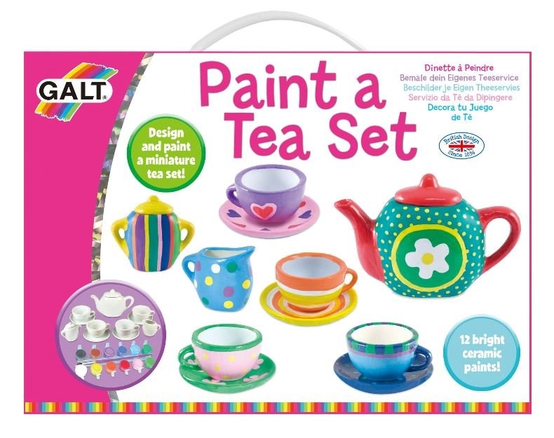 Transformez un après-midi ordinaire en atelier coloré. Le kit GALT contient un service à thé miniature en céramique que les enfants peuvent décorer eux-mêmes – du point aux rayures. Une fois sec, le service peint devient un bel accessoire pour les jeux de réception.
