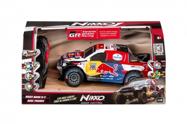 Découvrez une conduite palpitante inspirée du rallye DAKAR. La voiture R/C Toyota Dakar à l’échelle 1:18 offre un look réaliste, des performances fiables et une prise en main facile. Les lumières LED avant améliorent la visibilité, les pneus en caoutchouc assurent une bonne traction et la carrosserie robuste gère les terrains légers.