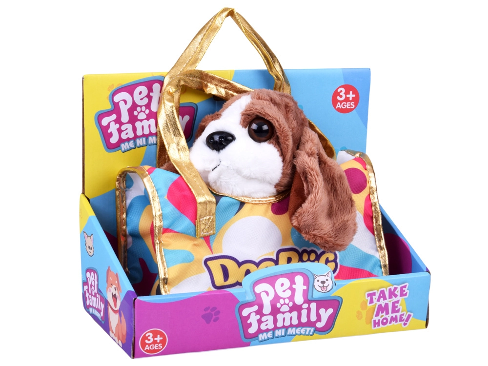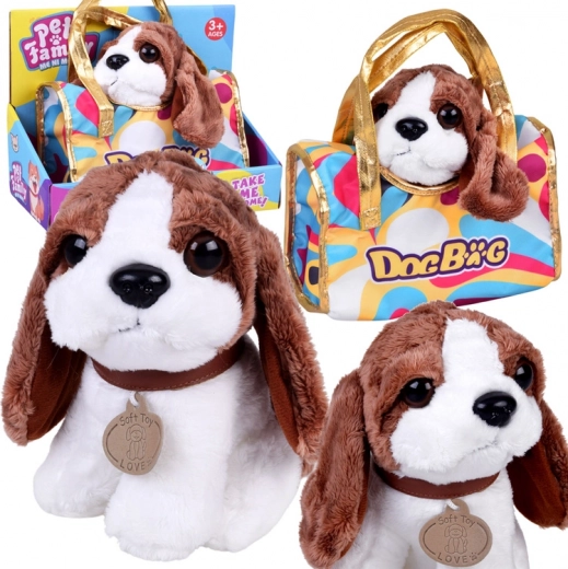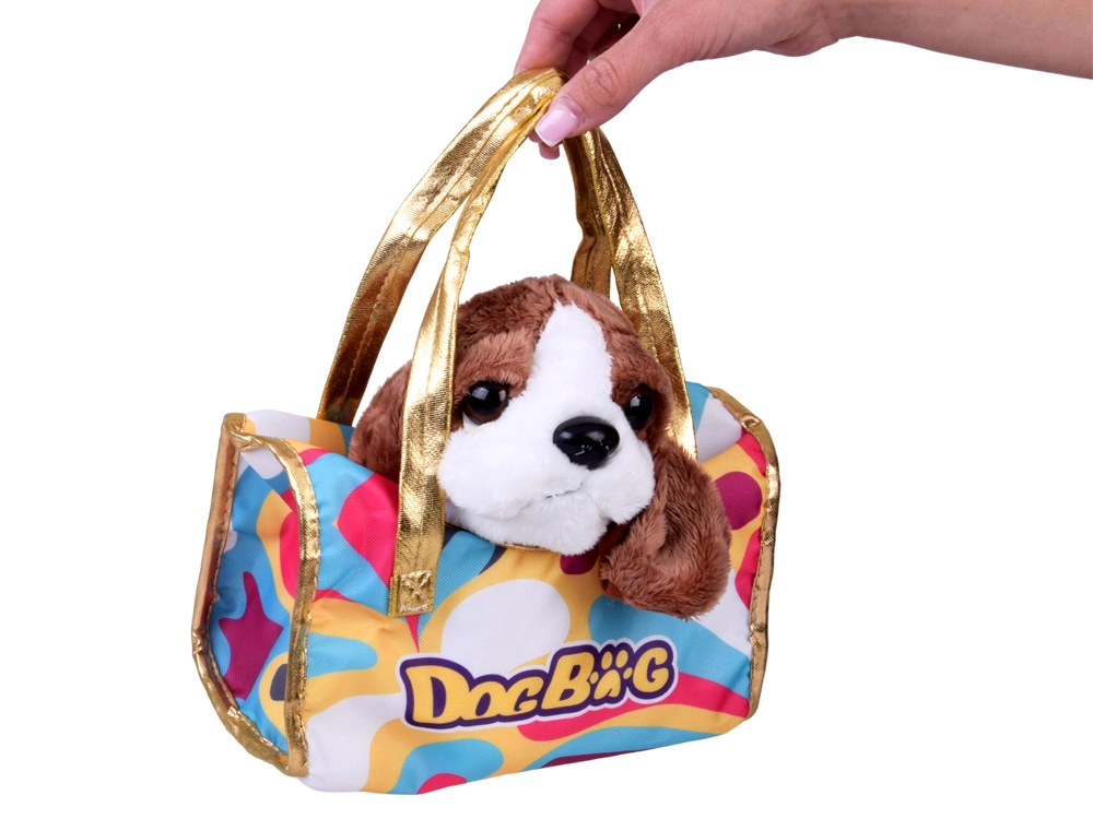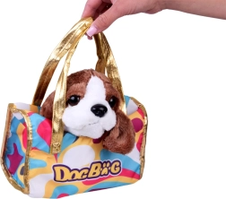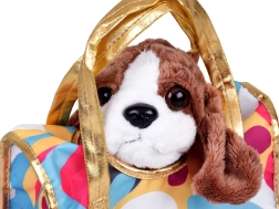 Ce chien en peluche tout mignon deviendra vite un fidèle compagnon au coucher, pendant le jeu et lors des sorties. Des détails réalistes, comme les oreilles souples, les yeux brillants et la petite truffe adorable, encouragent l’imagination des enfants et le développement de l’empathie envers les animaux. Il est accompagné d’un sac de transport stylé au motif multicolore avec poignées dorées, rendant les jeux de « promenade » et de soins encore plus amusants.