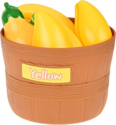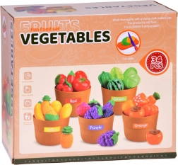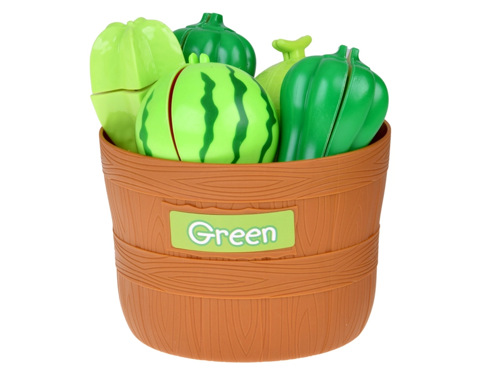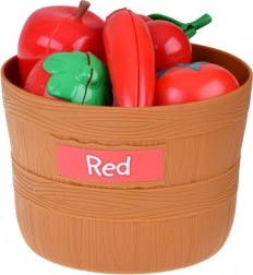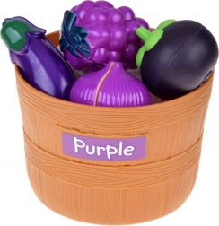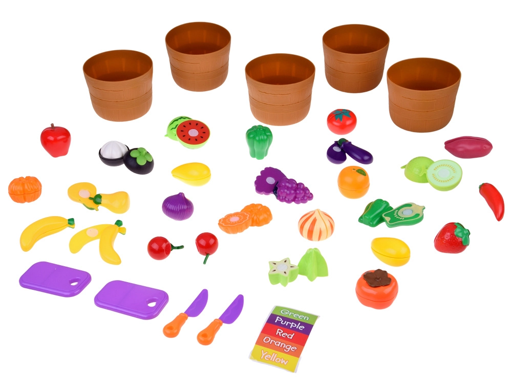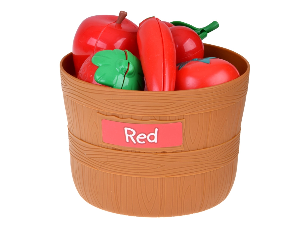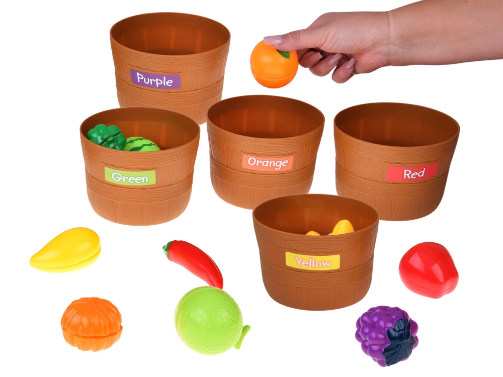 Cinq paniers avec étiquettes colorées motivent les enfants à trier les aliments par couleur. Une excellente base pour la perception précoce et le développement de la logique.