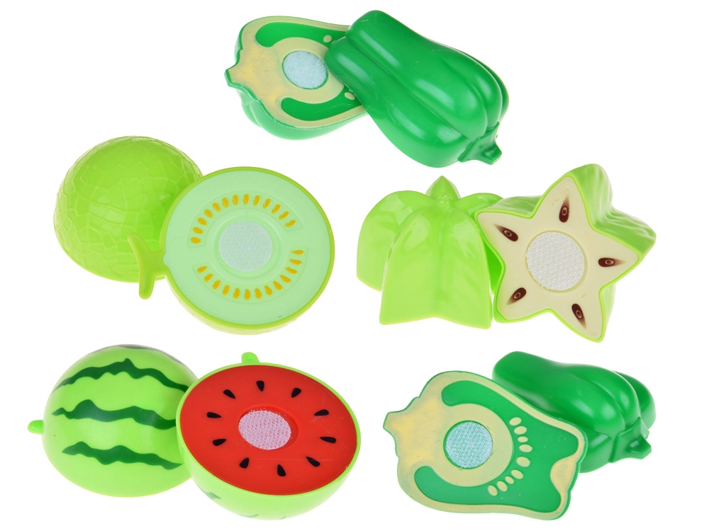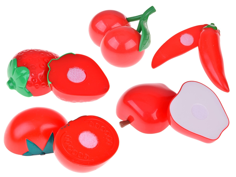 Ce grand set de nourriture en plastique pour enfants allie amusement et apprentissage. Les enfants peuvent « couper » les pièces en deux et les rattacher grâce au velcro, les trier par couleur dans les paniers et apprendre de manière ludique les noms des fruits et légumes. Les formes réalistes et les couleurs vives invitent à l’exploration et au jeu d’imitation dans la cuisine pour enfants.