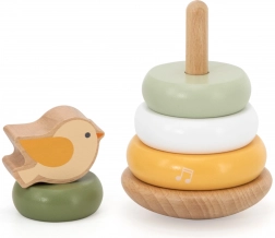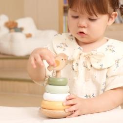 La tour empilable en bois avec un adorable petit oiseau au sommet ravira chaque tout-petit. Les anneaux colorés aux bords lisses sont faciles à saisir et à empiler dans différents ordres, ce qui soutient la distinction des couleurs et des tailles ainsi que la résolution de problèmes. La base stable et les formes agréablement arrondies assurent une manipulation sûre pour les petites mains.