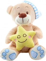 Adorable ourson en peluche avec bonnet bleu et petite étoile jaune, le premier compagnon idéal pour les bébés et les jeunes enfants. Fabriqué en matière douce et moelleuse, avec des détails brodés pour un jeu en toute sécurité, et grâce à ses dimensions compactes, il convient parfaitement au lit comme à la poussette. Parfait comme doudou pour s’endormir et se calmer pendant la journée. Âge 0+.