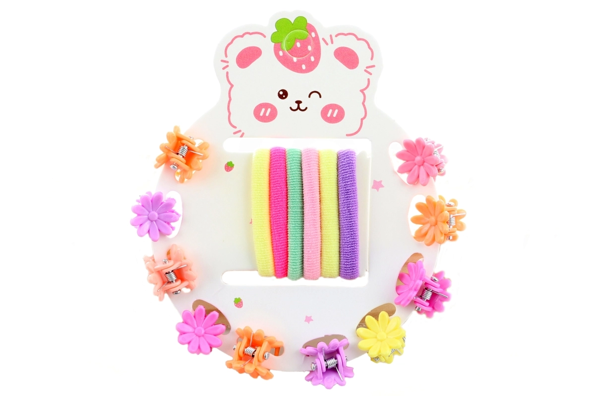Adorable set de coiffure pour petites coquettes, comprenant 6 élastiques colorés et 10 petites pinces en forme de fleurs. Parfait pour le quotidien comme pour les occasions spéciales. Faciles à utiliser, douces pour les cheveux d’enfants et couleurs joyeuses pour des coiffures pétillantes.