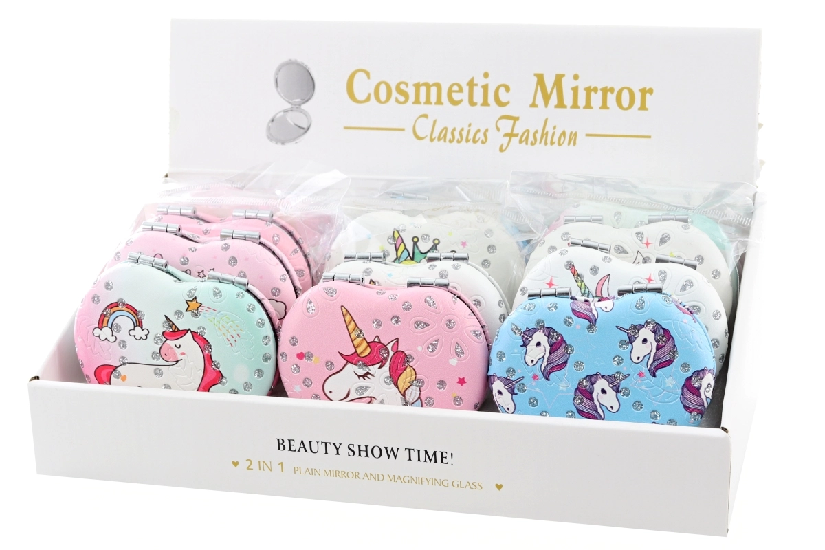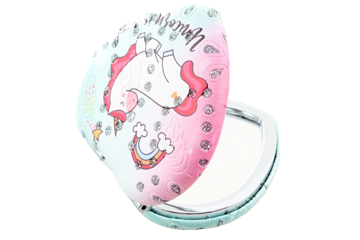 Vous cherchez un accessoire mignon et pratique pour votre sac ? Ce miroir de poche en forme de cœur avec motif licorne est un excellent choix. Ses dimensions compactes d’environ 7 × 7 cm garantissent que vous l’aurez toujours sous la main – pour une retouche maquillage rapide ou un contrôle de votre apparence au cours de la journée.