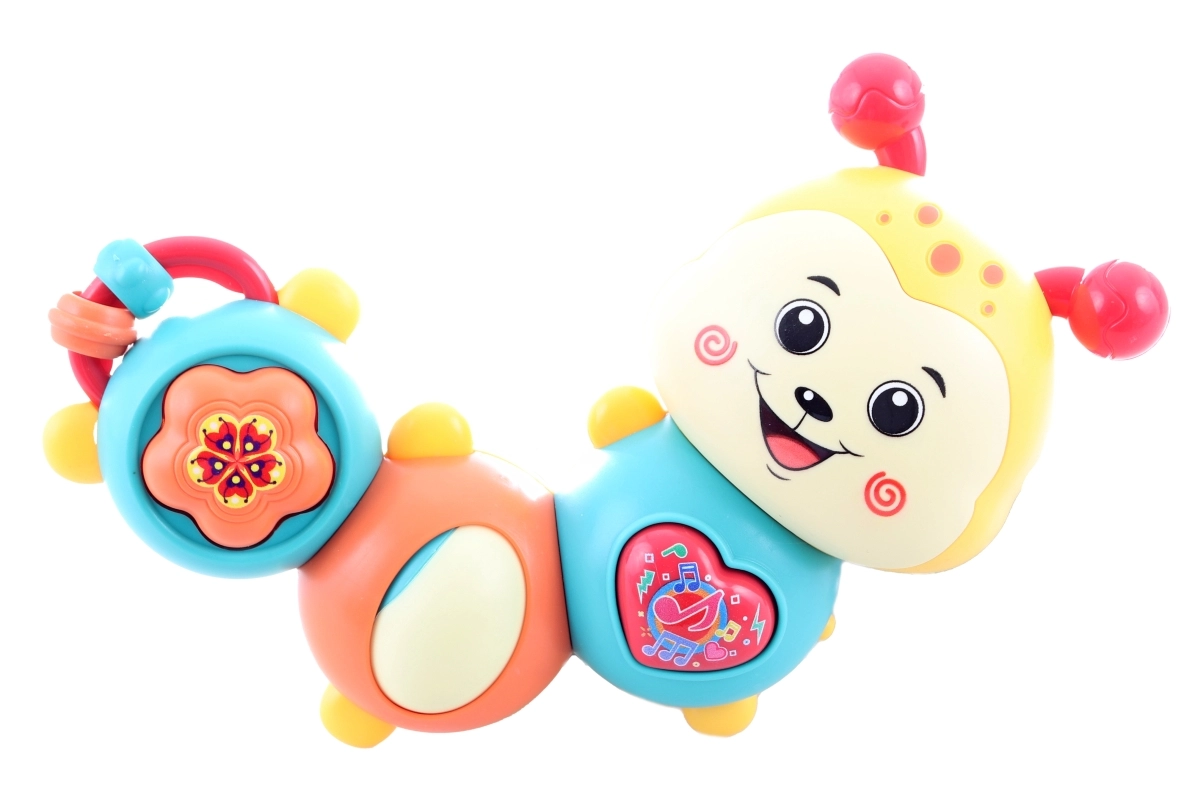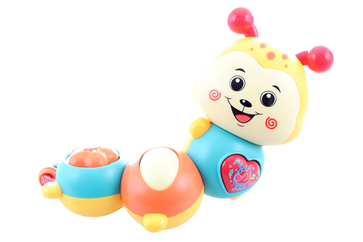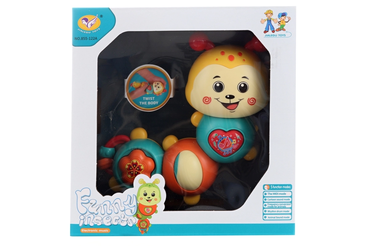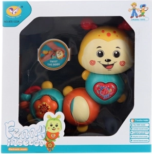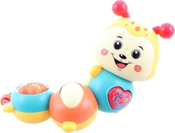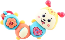 Adorable chenille interactive pour enfants dès 3 ans, offrant des effets sonores et mélodies, des segments rotatifs pour des torsions ludiques et une palette de couleurs qui favorise le développement sensoriel. Le jouet est fabriqué en plastique résistant, alimenté par 2× piles AAA (non incluses) et idéal pour jouer à la maison comme en déplacement.