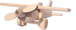 L'avion en bois est soigneusement confectionné à partir de hêtre naturel, simplement ciré et poli pour préserver son aspect naturel. Grâce à son hélice et roues mobiles, ce modèle offre une expérience de jeu réaliste. Sans bords tranchants, il est sûr même pour les plus petits, ce qui le rend également adapté pour une utilisation au bac à sable. De plus, il peut servir d'élément décoratif grâce à son design classique.
