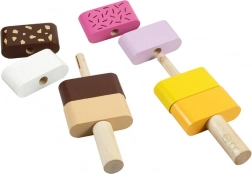 Offrez aux enfants un jeu créatif avec les glaces en bois à empiler DETOA. Chaque pièce a des bords lisses et agréables, et des segments colorés qui s’enfilent facilement sur les bâtonnets en bois. Les petits pâtissiers exercent leurs doigts, apprennent à différencier les couleurs et créent leurs propres combinaisons.