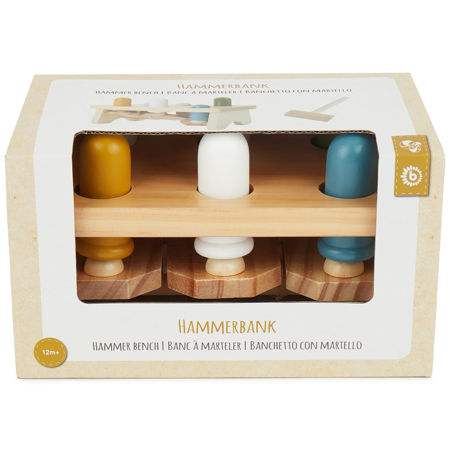 Le banc à marteler en bois de qualité Bieco est le jouet idéal pour les tout-petits dès 12 mois. Les enfants tapotent avec le marteau sur les chevilles pastel qui montent et descendent de manière ludique, développant ainsi la motricité fine, la coordination œil-main et apprenant les principes mécaniques de base. Le jouet est fabriqué en bois naturel robuste et peint avec des peintures à l’eau pour un jeu en toute sécurité.