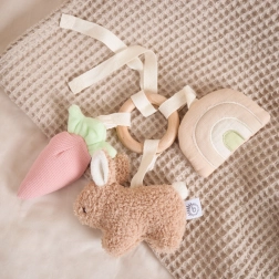 • Lapin avec hochet et oreilles bruissantes – incite à saisir et à secouer.